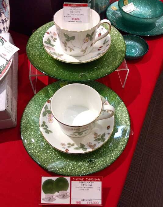 ↓ウエッジウッドの定番ワイルドストロベリーもグリッターのプレートと合わせると素敵!