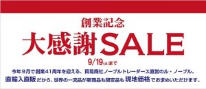 店頭では創業記念大感謝祭SALEを9/19(火)まで開催しております。