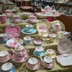 2階のヘレンド特集では、花柄のティカップをメインにシノワズリのラージカップやヘレンドファンタジーの小筺など盛りだくさん。