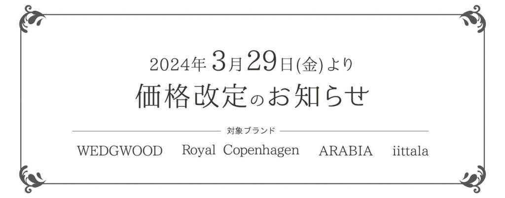 3月29日より価格改定の『ロイヤルコペンハーゲン』と『ウェッジウッド』