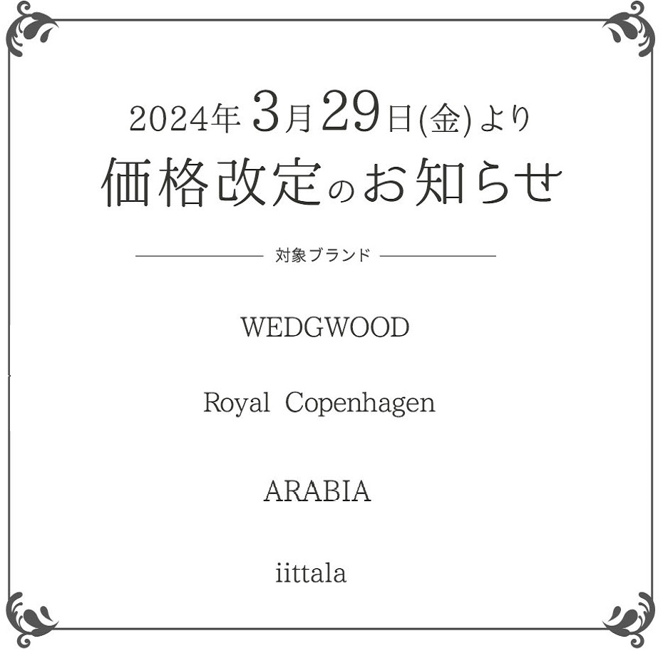 イッタラ・アラビア・ウエッジウッド・ロイヤルコペンハーゲンが