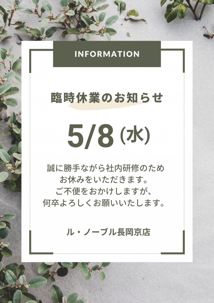 お知らせ:長岡京店は1/15(水)をもちまして閉店となります