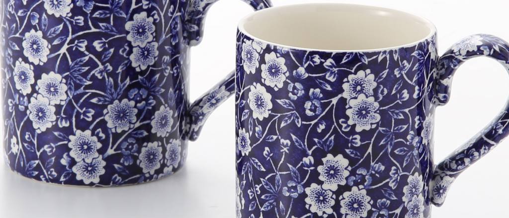 深いコバルトブルーが印象的なブルーキャリコはバーレイの代表的なデザインの1つです。