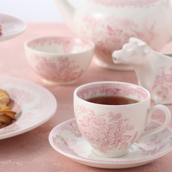 高麗キジと牡丹が描かれた「アジアティックフェザンツ」シリーズ。ホワイトに淡いピンク(ブルー)で描かれた図柄は、バーレイ社の商品の中で最も歴史があり、優雅で上品雰囲気な人気の高いシリーズです。