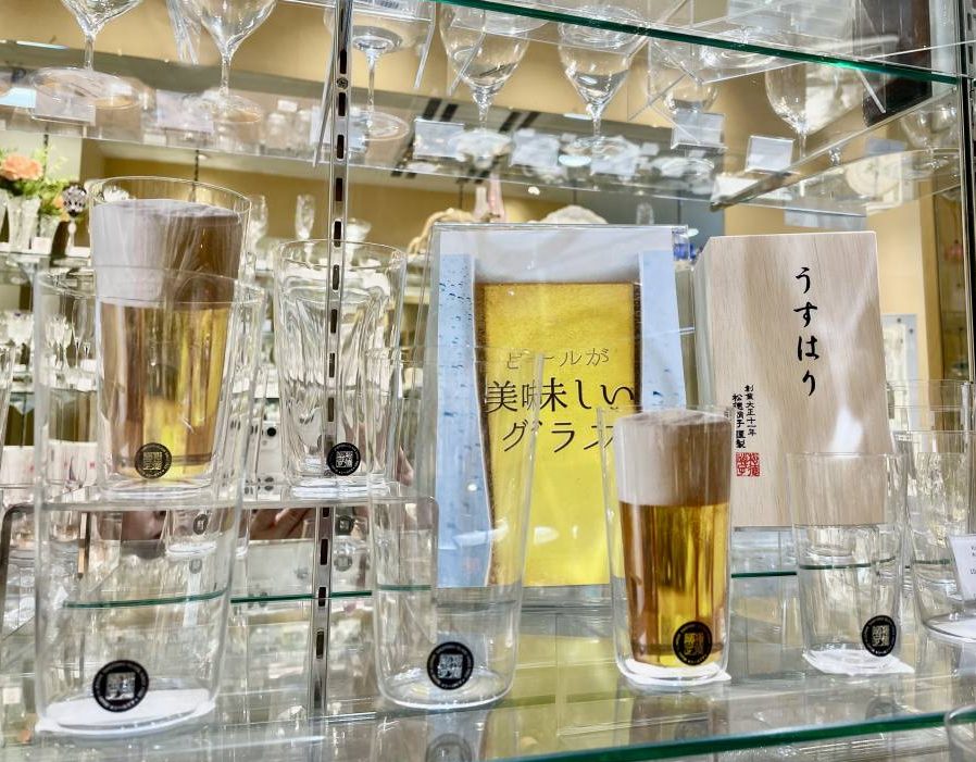 冷たいビールがさらに冷たく感じるこのグラス。もちろんビール以外にも!通年、超売れっ子です。