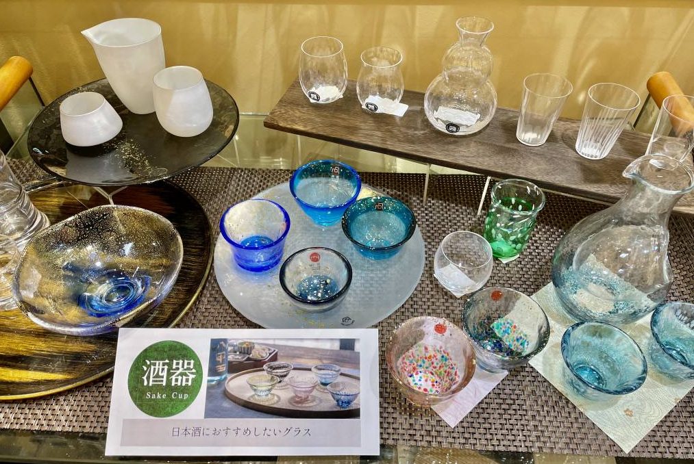 松徳硝子さんの徳利やぐい呑み。津軽びーどろさんの酒グラス、有田焼やま平窯さんの