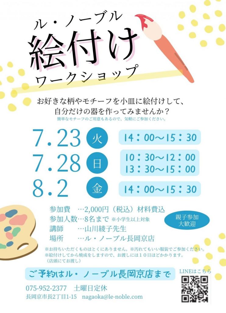【絵付けワークショップ】7/23,7/28,8/2