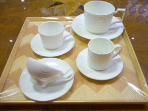 エスプレッソカップ/ソーサー達が揃いました。右上のティーカップと比べると絶妙な可愛さ!!!