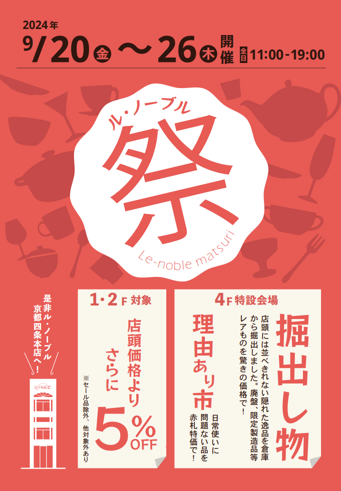 会場 ル・ノーブル京都四条本店4階特設会場(店内奥のエレベーターで4階へ)
