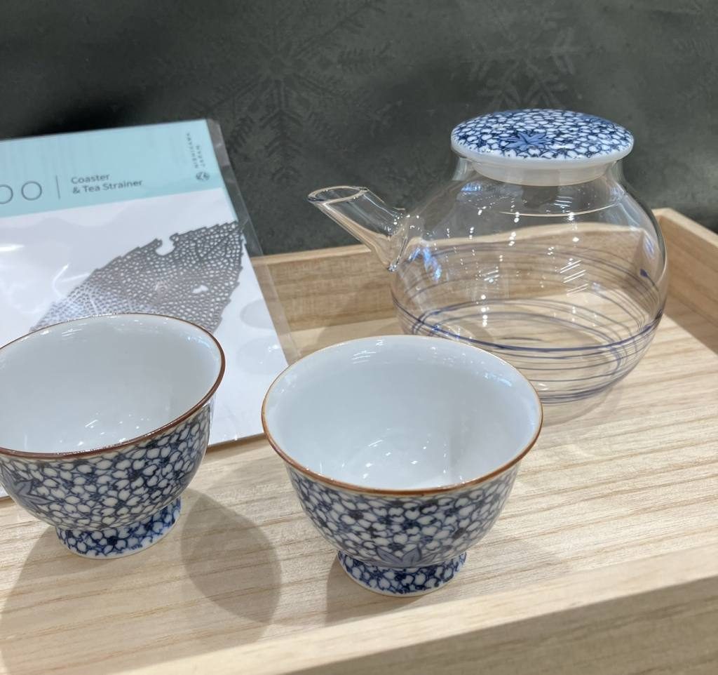 葉脈模様のコースターは、茶漉しにもなり、煎茶器セットとしてもお使いいただけます✨