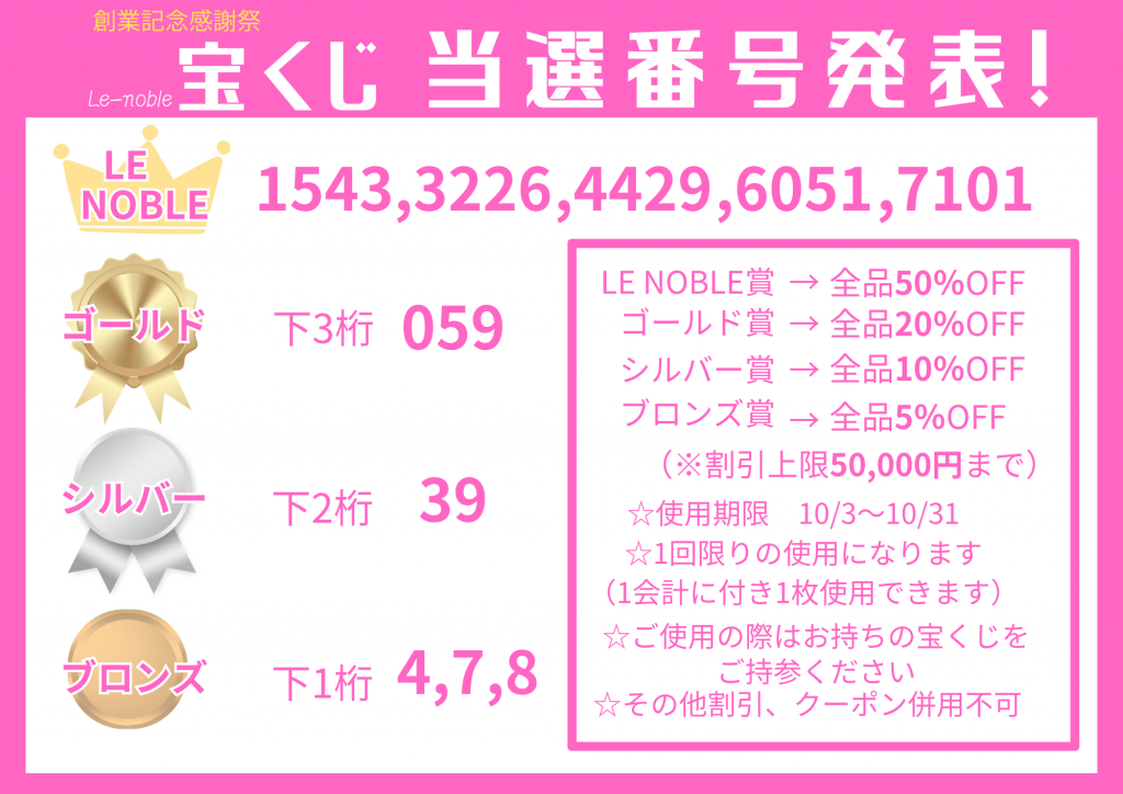 お渡ししておりました宝くじチケットの当選番号を発表いたします!!