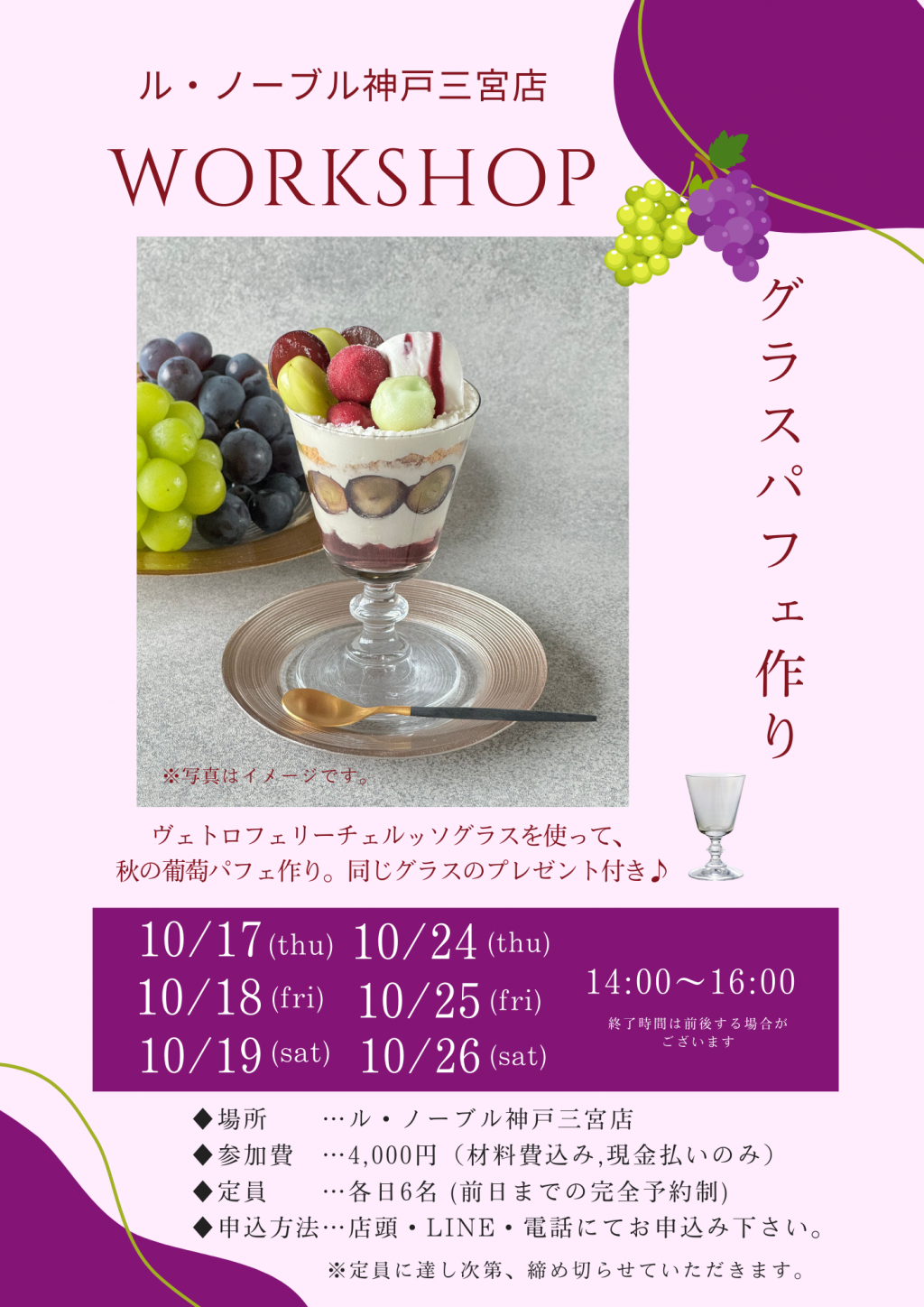 グラスを使ってのパフェ作りを10月も開催いたします!!