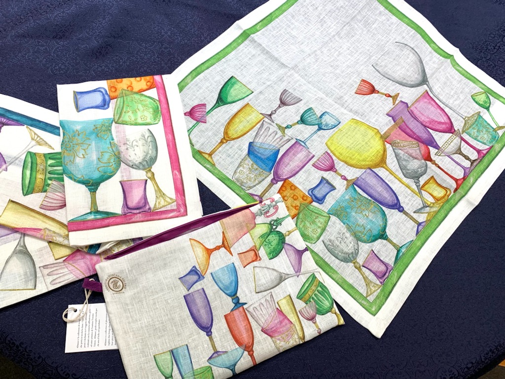 46×46cm 4枚セット Cincin/乾杯 100%リネン ポーチ付