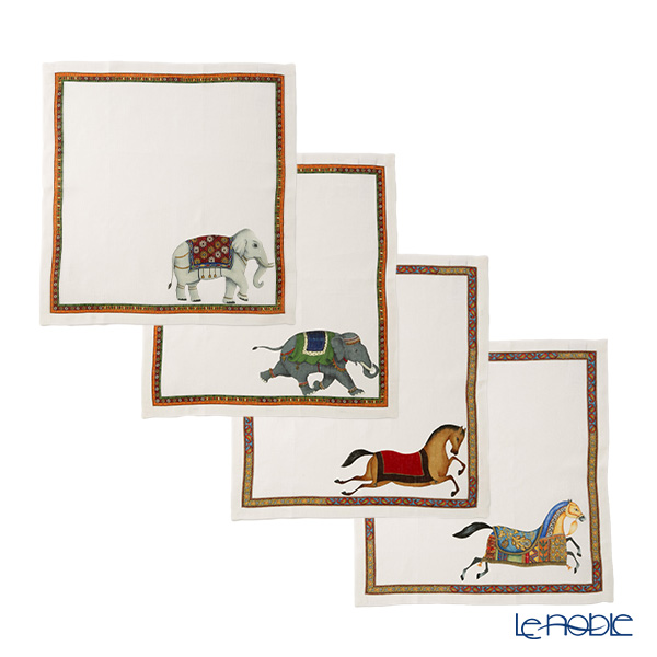 46×46cm 4枚セット マハラジャ 100%リネン ポーチ付