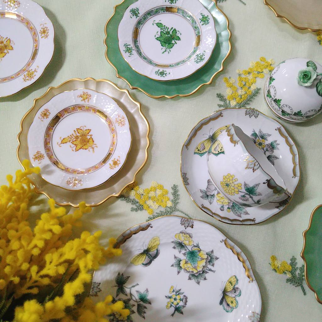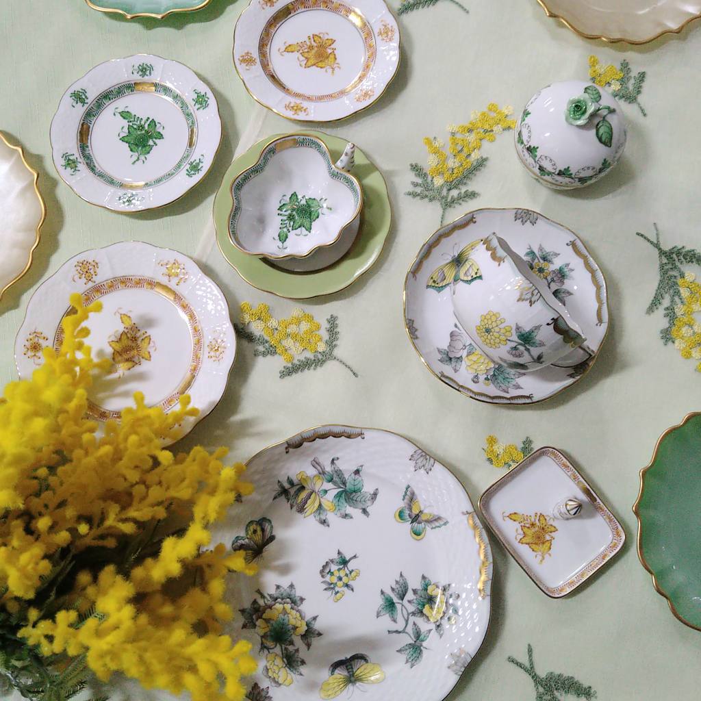ヘレンドでミモザカラーのうつわを集めてみました。
