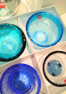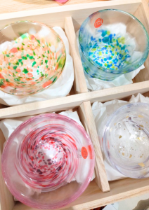 津軽びいどろ、青森県の有名なメーカーさんです。商品に付けられて色の名前も、『あじさい』『水毬』『桜吹雪』と、