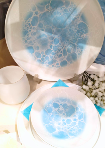 大きく見えるプレートは『泡』というシリーズです。こちらもなかなかの薄さと軽さで繊細な印象をうけます。