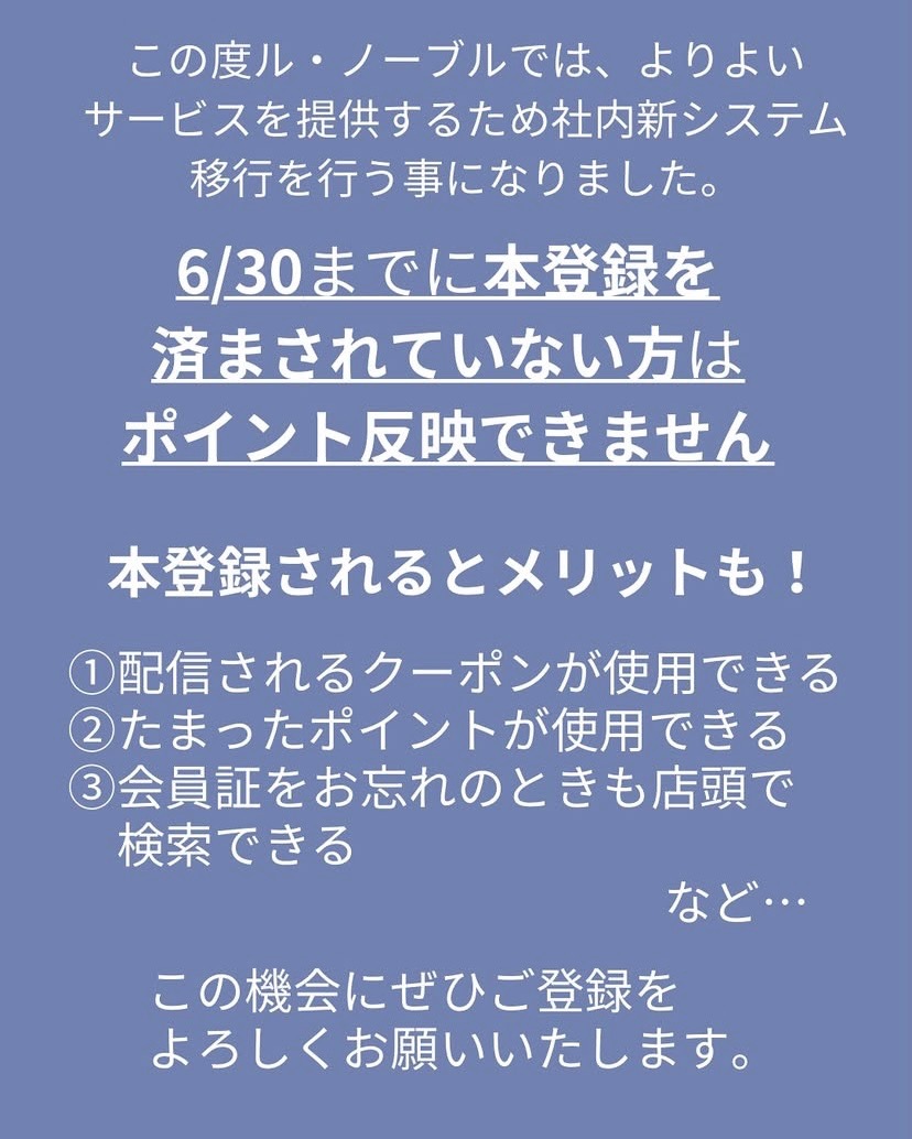 6/30(月)までに本登録がお済みでない場合