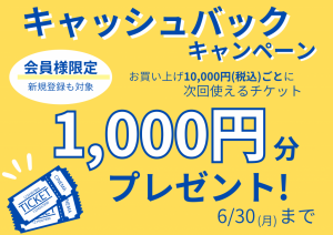 税込1万円ご購入ごとに、1000円分のショッピングチケットをプレゼント♪