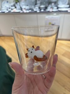 【左から】タビーキャット 35209008 タンブラー 350ml ホワイトキャットアンバーテイル 税込 2,750円 / タビーキャット 35209005 タンブラー 350ml ライイングホワイトキャット 税込 2,750円