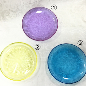 ①のファウナピンクがピンクと言うより紫がかった色をしていますが、蛍光灯の下では青色に変化する特殊な色を思っています。