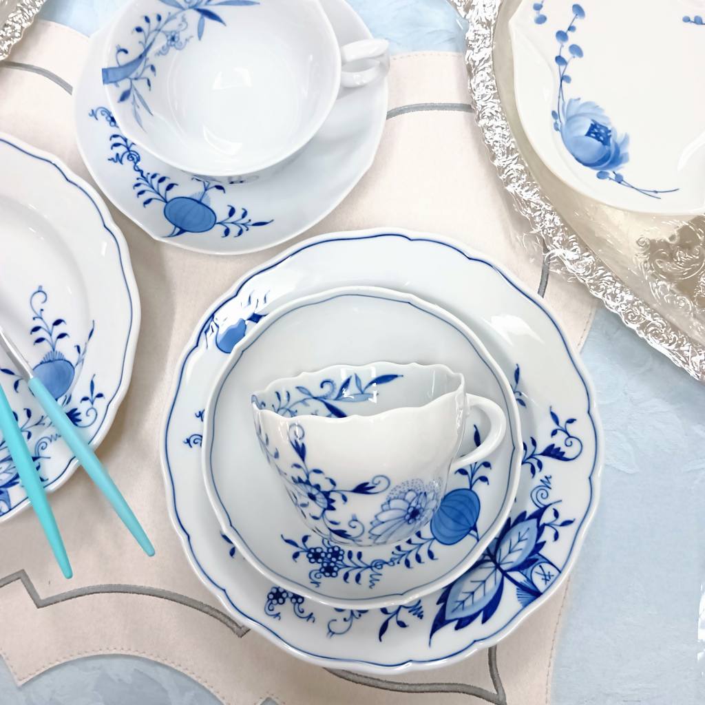 白磁にブルーの模様が爽やかな「ブルーオニオン」は人気シリーズのひとつ。ブルーオニオンをシンプルにアレンジしたのがこちらの「ブルーオニオンスタイル」シリーズです。