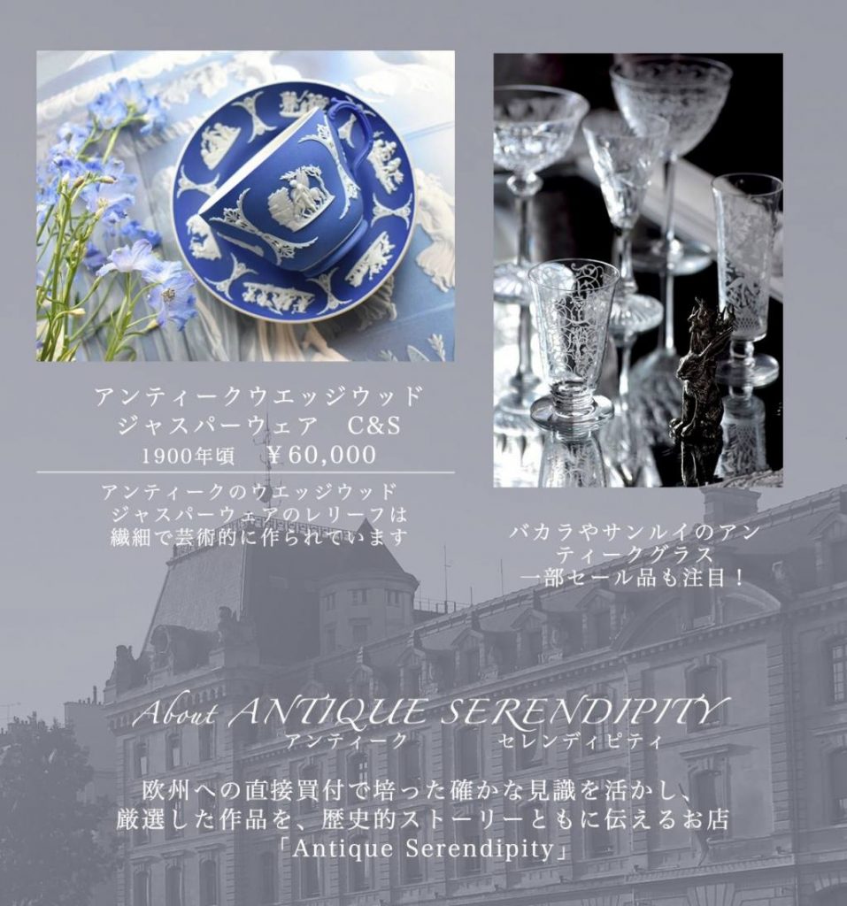 このイベントでは フランスのアンティーク カトラリー、ウェッジウッドのアンティーク食器、テーブルアクセサリー、そしてアンティークセレンディピティさんといえば!な バカラやサンルイなどのアンティークグラスも多数展示予定しております。