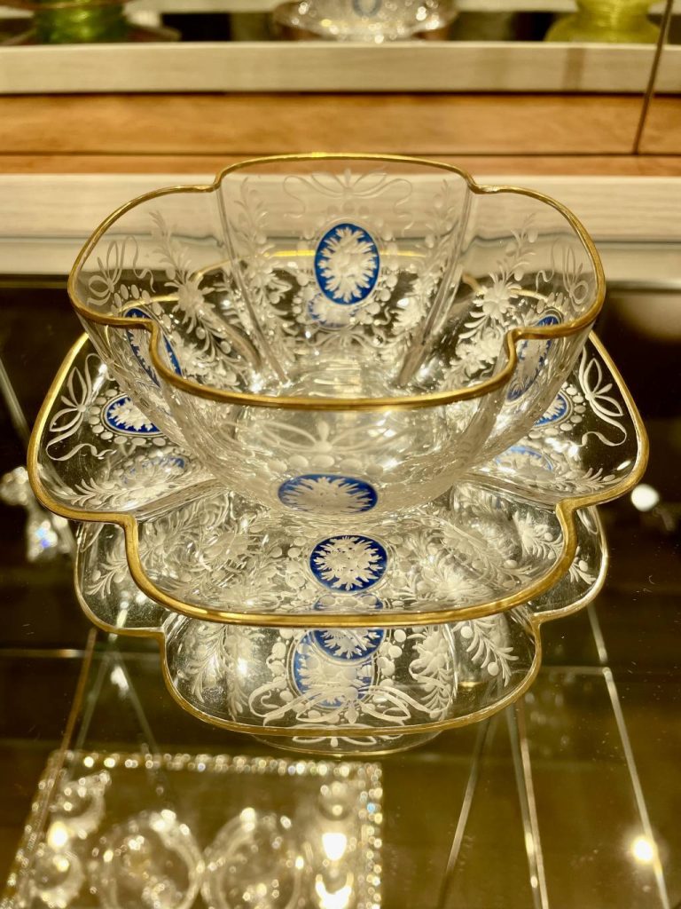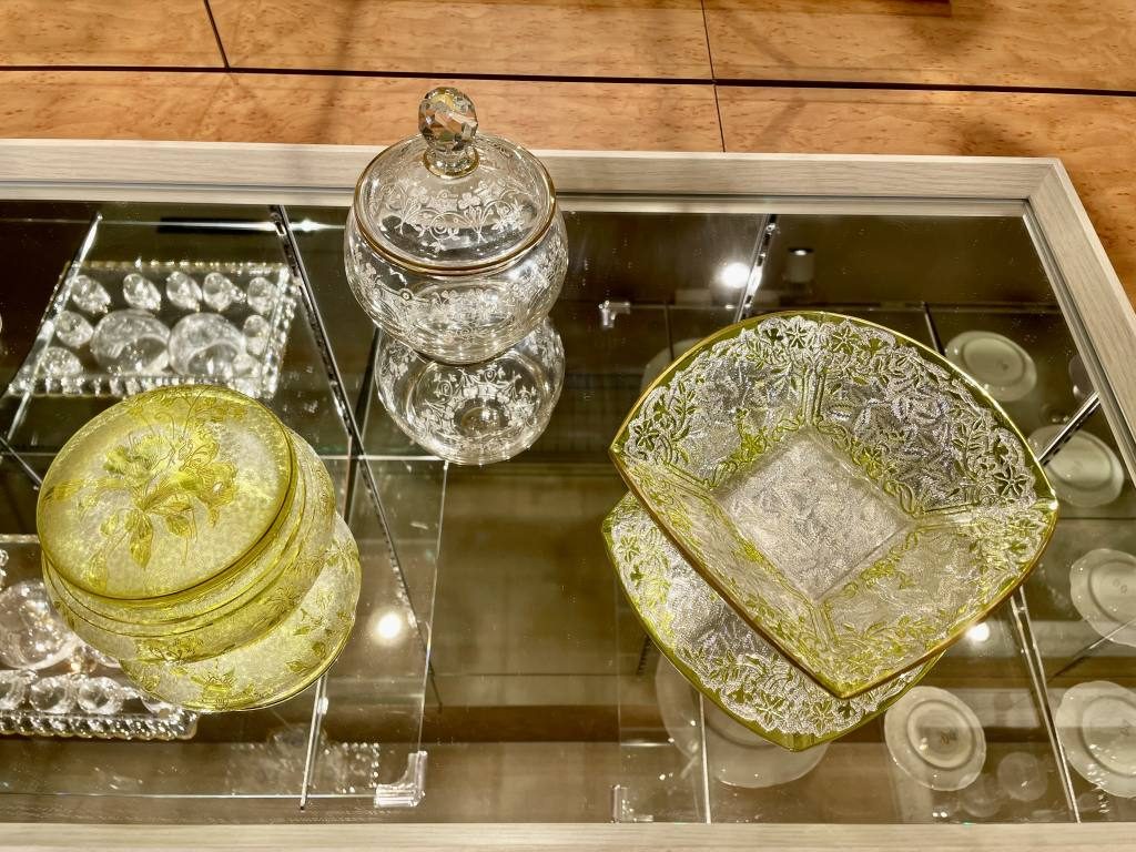 オールドサンルイ、オールドバカラ 絶妙な色と繊細なエッチングの卓上小物