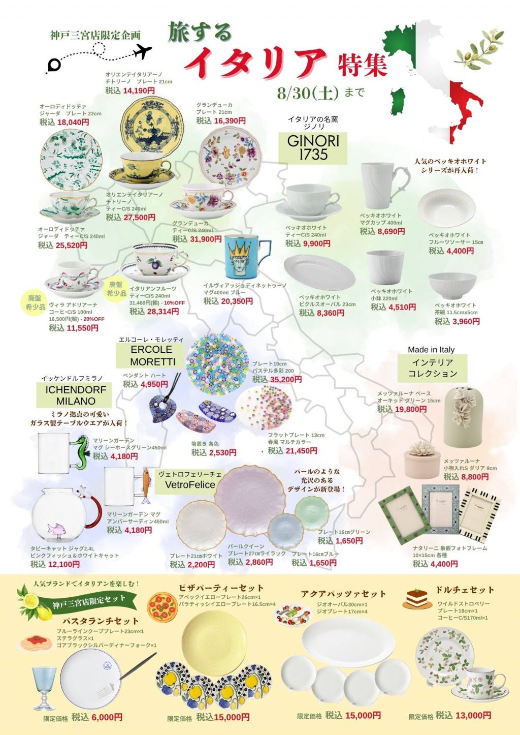 8月は『GINORI1735』を主にイタリア食器を集めた