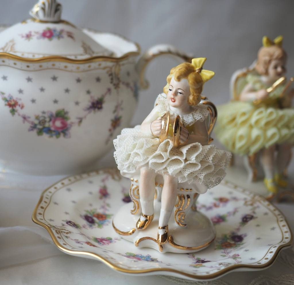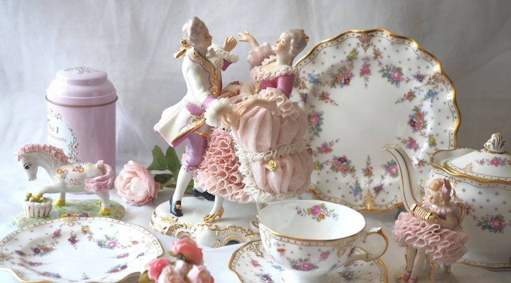特にロココ調のドレスをまとった女性のフィギュリンが人気です。