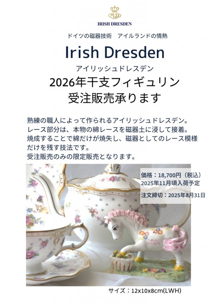 今回は、ル・ノーブル初入荷の アイリッシュドレスデン のご案内です。