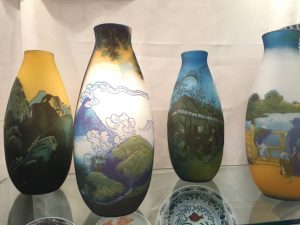カメオ技法と呼ばれる、色被せガラスにアシッドエッチング(酸彫り)が施された技法で、
