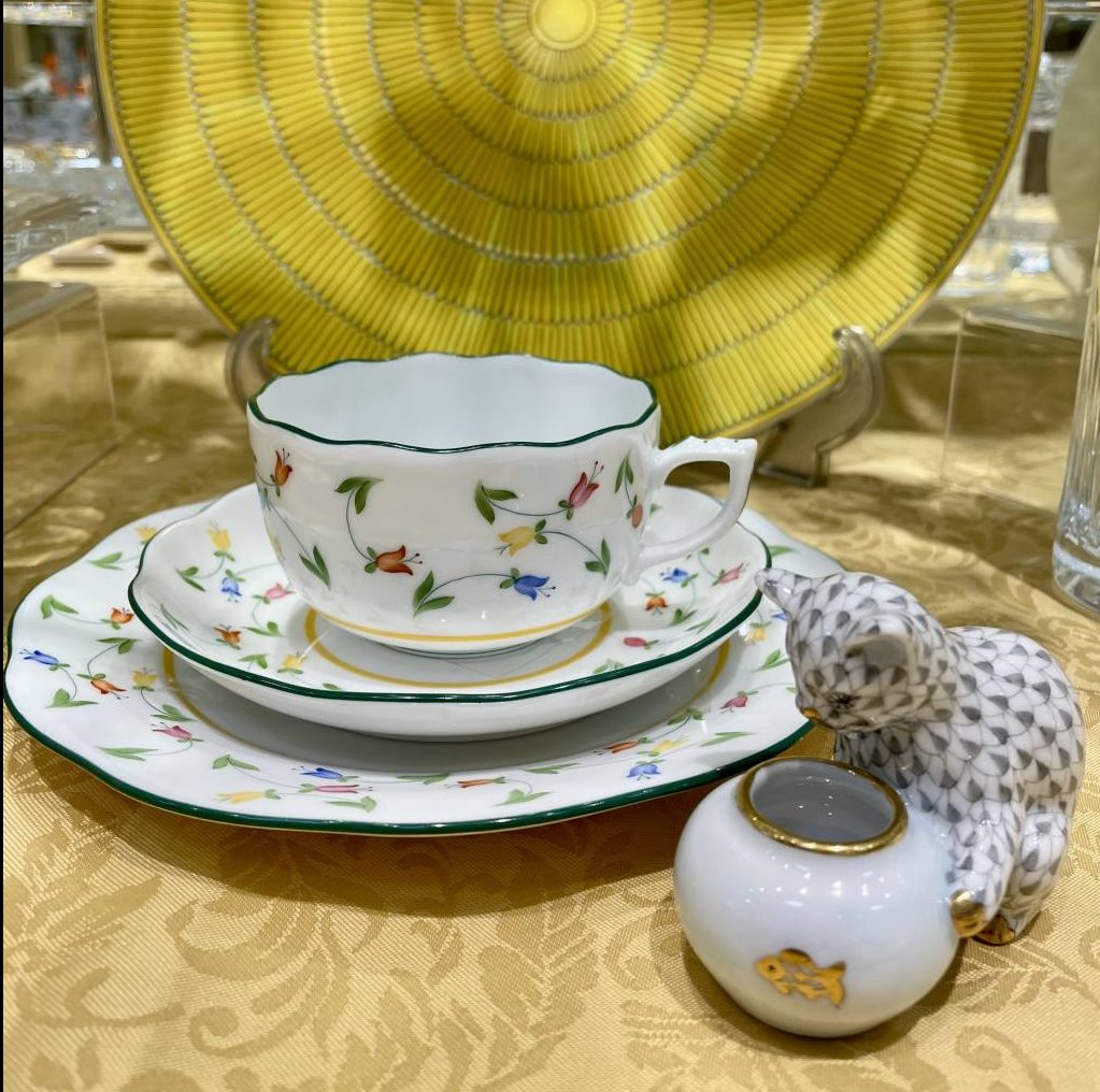 ヘレンドのティーカップやプレートは大半が金もしくはプラチナで縁取られています。