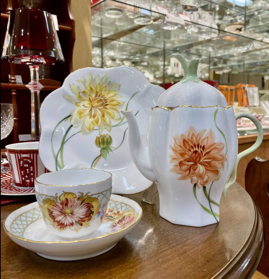 左) PM ティーC/S ¥176,088 ダリア プレート19cm ¥62,744 コーヒーポット ¥140,800