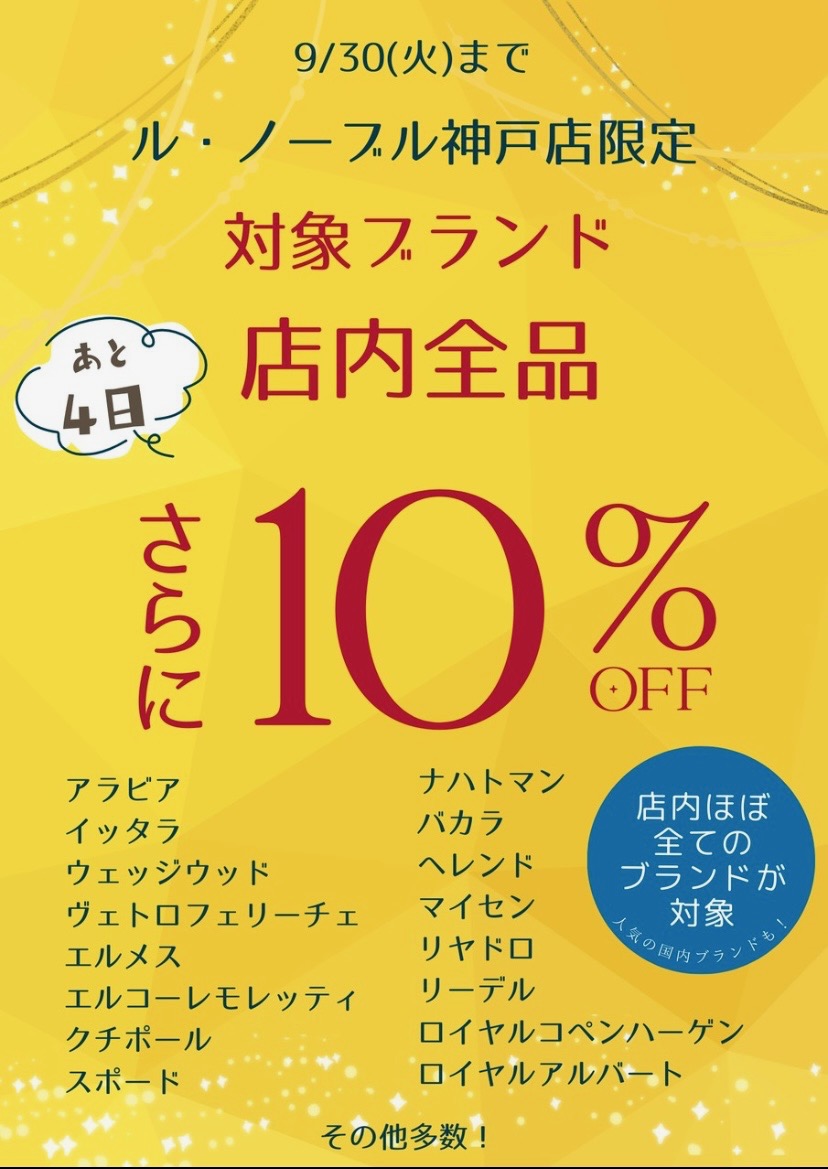 対象ブランド店内全品10%OFF9/30まで!!