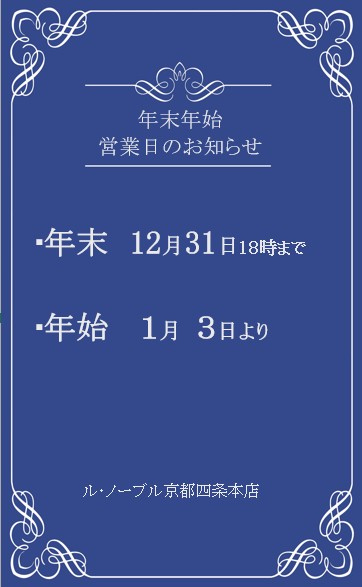 ル・ノーブル京都四条本店は、12月31日18時をもちまして、