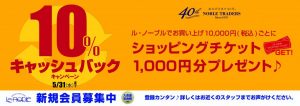 税込1万円のお買物毎に、ル・ノーブル店舗でご利用頂ける1000円分の商品券をプレゼント!