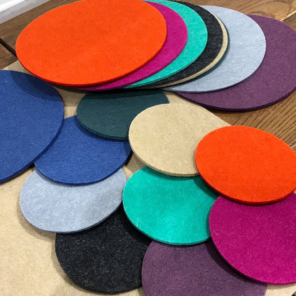通常のフェルトとは違い耐熱温度は低く(70~80℃)ですので、なべしきなどとしては使えませんのでお気を付けくださいませ。