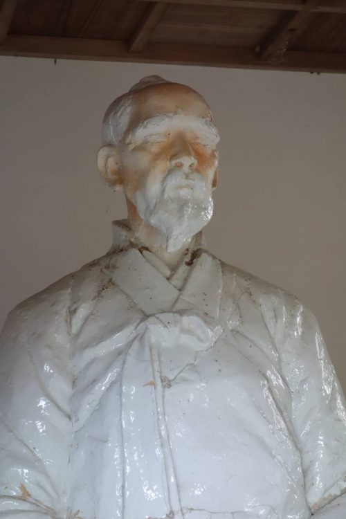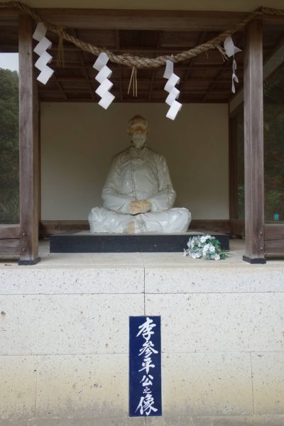 そして、磁石場から数十メートルの場所に有田焼の祖である李参兵の像がひっそりと祀られています。実は磁石場の隣は秋の穴場紅葉スポット。あいにく今年はあまり美しく色づかなかったようで、ちょっとさみしげでした。ザンネン・・・