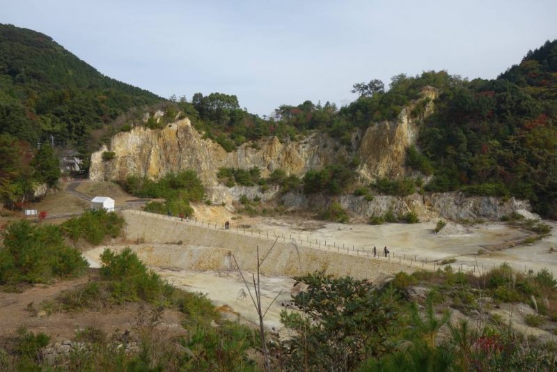まずは巡回バスに乗って、焼きものの命でもある土が採掘されていた場所へ。かつて有田焼は泉山磁石場という場所で原材料を採掘していました。有田の中心部から車で5分ほど山道を登ったところにあるその場所は、豊臣秀吉が朝鮮出兵の際に連れ帰った陶工のひとり、李参兵(りさんぺい)が発見した場所です。