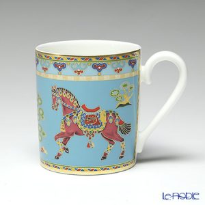 素敵なアクアマリン色にオリエンタル感漂うマグカップ。
