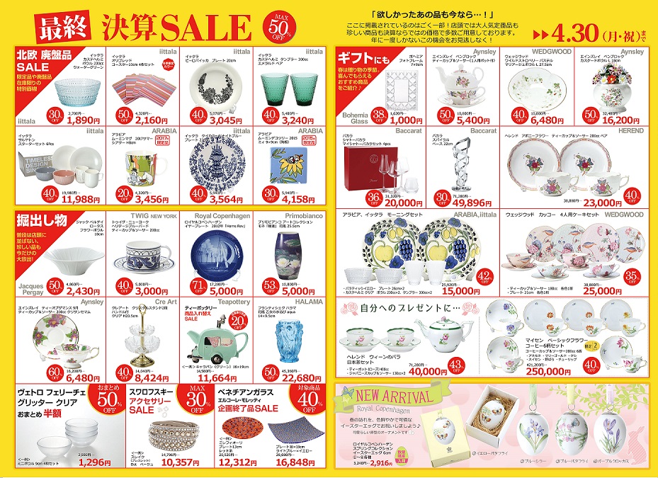 ウェッジウッド、ヘレンド、マイセン、イッタラ、アラビアなど。