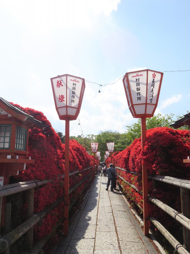 車道沿いのつつじも咲いており、今がちょうど見ごろ!今年はゴールデンウィークまでは持ちませんので、長岡京への観光はお早めに~!!!
