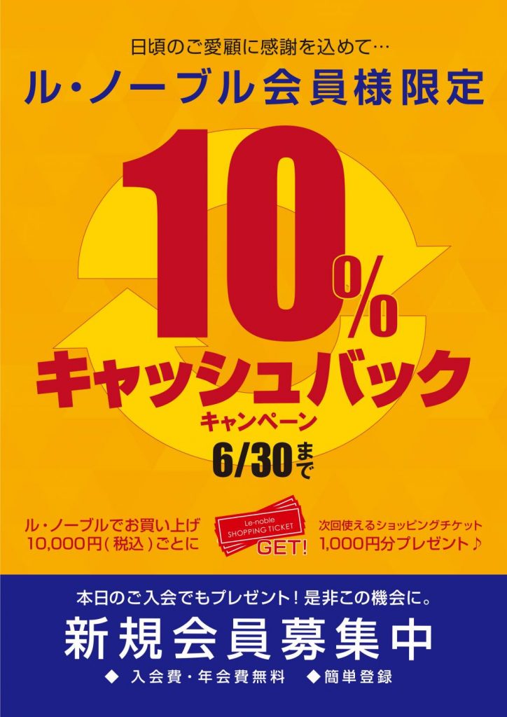 只今ル・ノーブルでは、会員様限定10%キャッシュバックキャンペーンを開催中です。