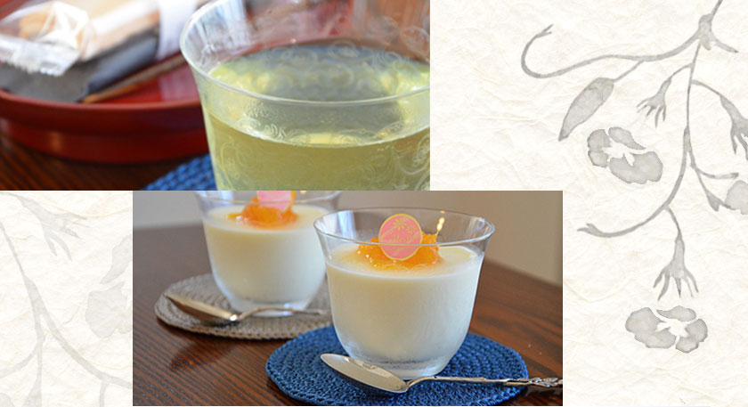 冷茶以外にも、冷製のお菓子やアイスクリームやコンポートを盛りつけると、その優雅さはさらに美しく際立ちます。