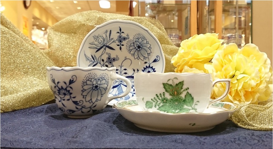 左)マイセン ブルーオニオン コーヒーカップ&ソーサー