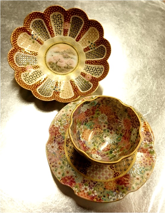 ・京薩摩 煎茶碗皿 中菊詰 205,200円(画像手前)