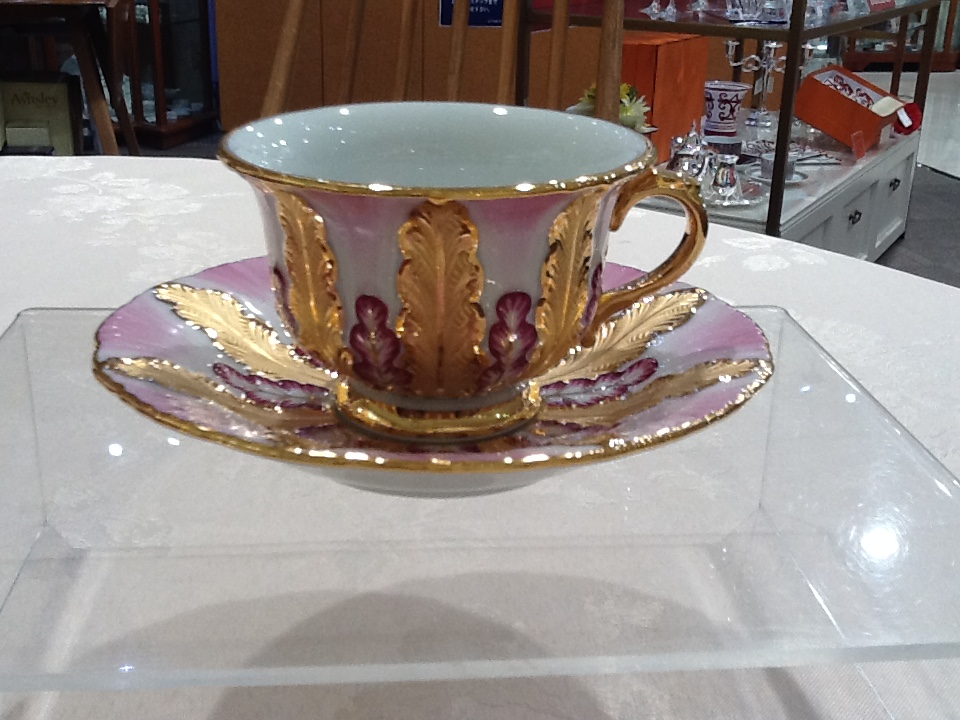 浮彫のハアザミが特徴で、金彩(23金)がゴージャスな雰囲気を醸し出しています。