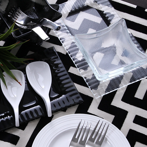 白と黒の無彩色のみで表現されており、テーブルに大人びた印象を与えてくれます。