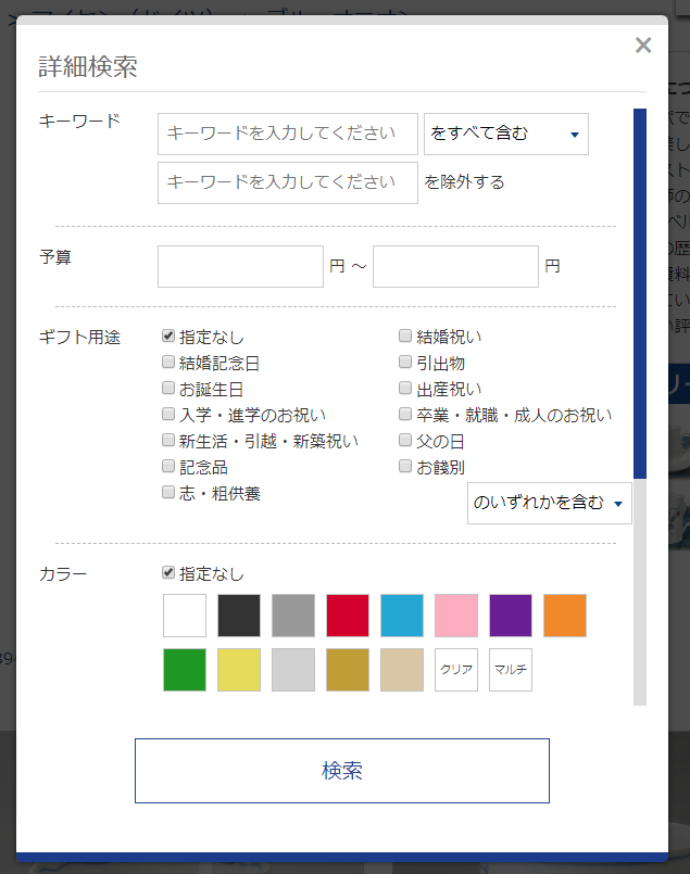 今回ご紹介した黒色以外にも、みなさんのお好みのカラーで商品を絞りこんでいただけます。是非ご利用ください。